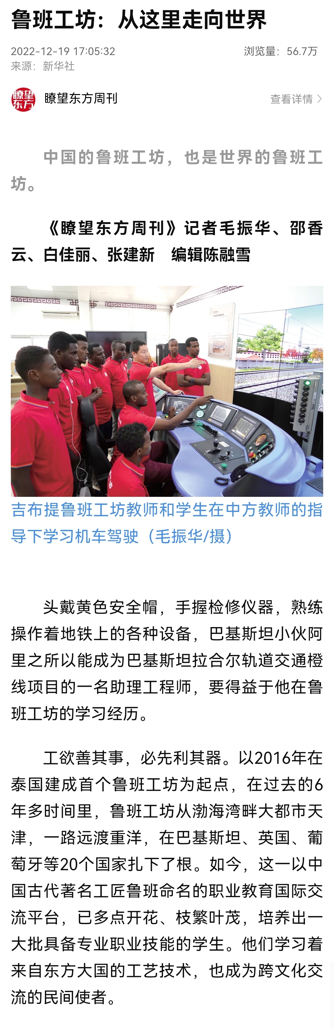 瞭望东方周刊:鲁班工坊:从这里走向世界