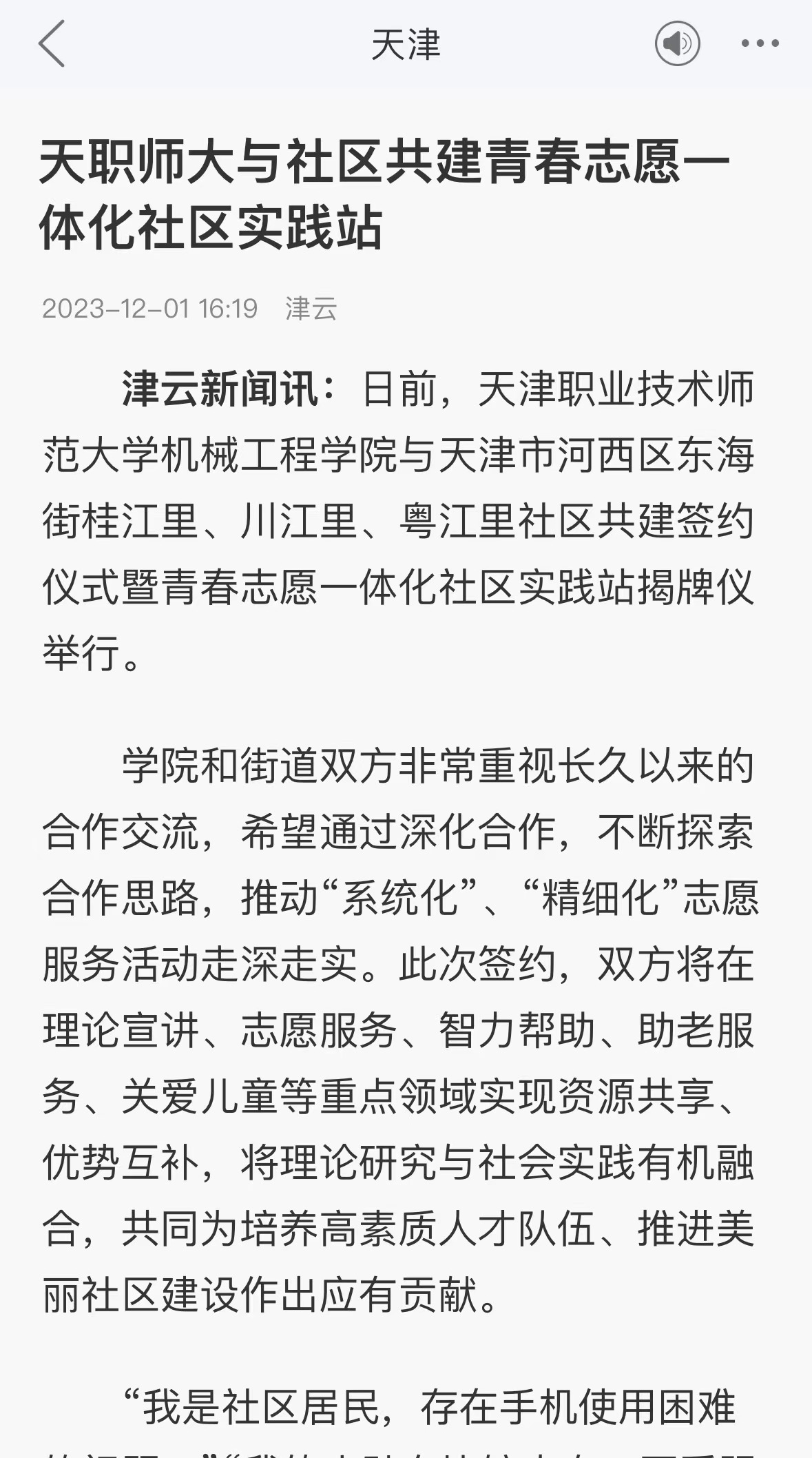 今日津云以“本分师年夜取社区同修芳华意愿1体化社区理论站”为题报导ued体育机器工程教院取天津市河西区东海街桂江里、川江里、粤江里社区同修签约典礼暨芳华意愿1体化社区理论站掀牌。