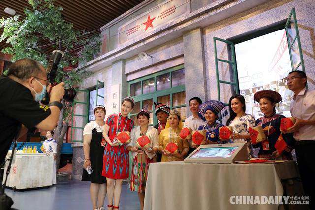图为齐邦多数平易近族观光团正在华夏同产党汗青铺览馆摄影纪念