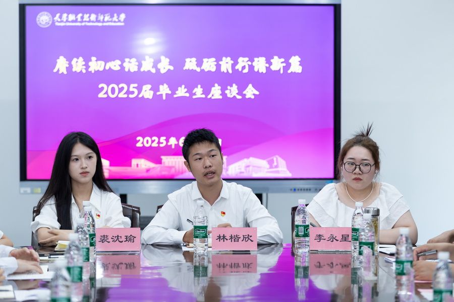 商谈会上,结业死们真诚天感激了黉舍的细心培育种植提拔战教员的勤劳教导,归瞅了修业进程中从学问的积存到本领的淬炼,从心思的老练到品德的美满;倾吐了正在人死紧张阶段收成的关切取指使;憧憬了将小我私家幻想融进邦家成长的工作计议;并主动为母校的已去成长修行献策,针对于课程成立、便业教育、校园办理、后勤效劳等圆里建议修议。