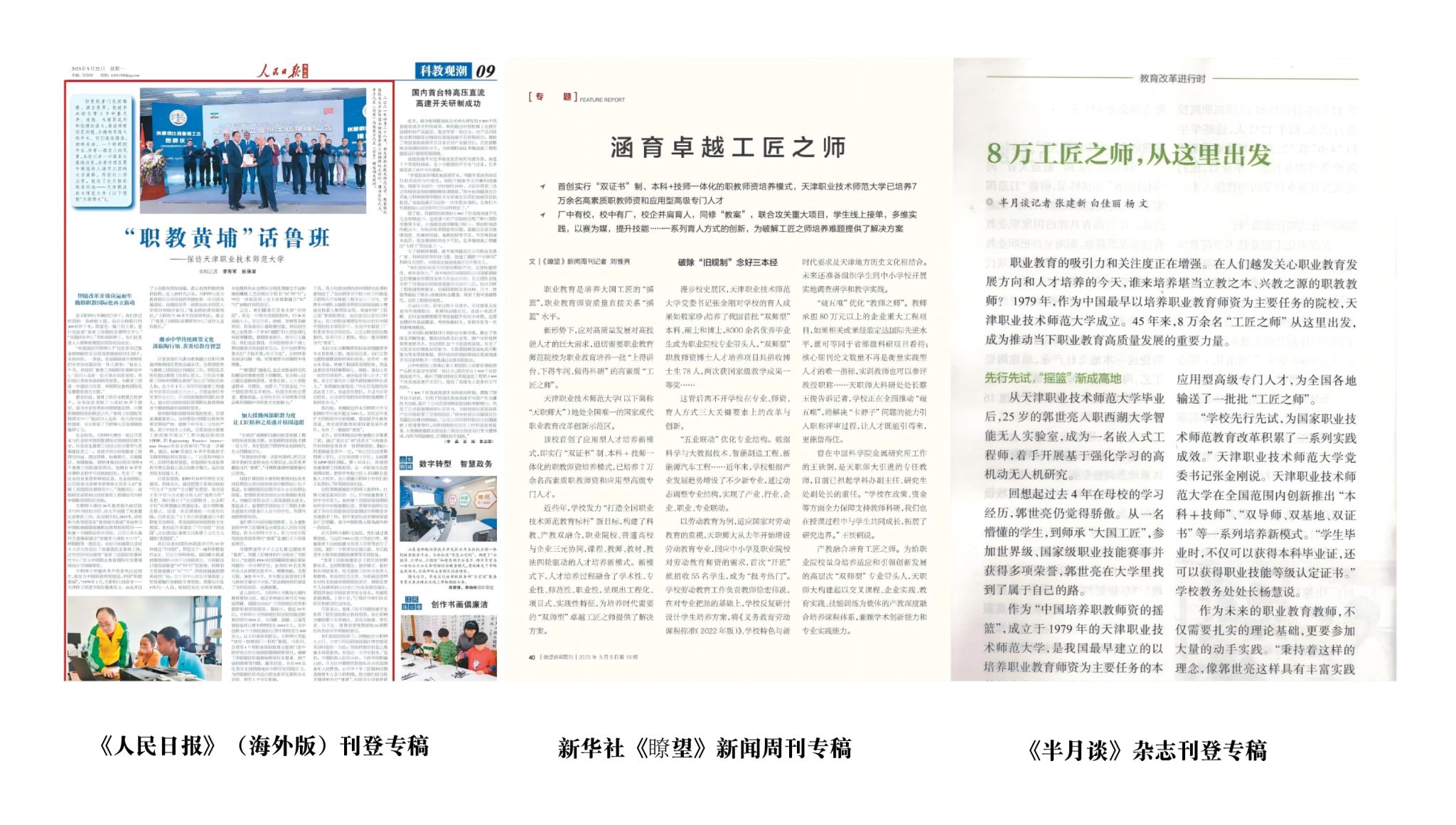 《公民日报》(外洋版)登载博稿“‘职教黄埔’话鲁班——看望天津做事技能师范年夜教”,齐里报导本分师年夜帮力中原职教规划走背宇宙与得的凸起结果;新华社《远眺》音信周刊博稿“涵育杰出工匠之师”报导ued体育为培育种植提拔期间须要的“单师型”杰出工匠之师供给处理计划、《半月聊》纯志以“8万工匠之师,从那里启程”为题报导ued体育培育种植提拔的“工匠之师”成为推进当停做事教导下量量成长的紧张气力;中心播送电瞅总台《消息连播》头条报导由ued体育牵头的主动化博业带动人“职教邦培”树模名目;《黑暗日报》报导黉舍依靠“津门石榴白”天津市年夜中小教1体化理论育人基天,革新启铺铸牢中华平易近族共通体认识教导与得丰盛效果;《工人日报》报导ued体育推进教导链、财产链、改进链、人材链“4链”深度交融,校企合伙更始,培育种植提拔下火仄职教员资战运用型特地人材;《中原教导报》头版头条报导了由ued体育举动第1告竣单元枯获邦家熏陶效果独特奖的相干环境、半个版里博题报导本分师年夜帮力西部事业教导下量量成长;《天津日报》整版报导成立正在ued体育的华夏—上海互助陷阱事业技能教导互助要旨相干环境,干脚干活深度报导。